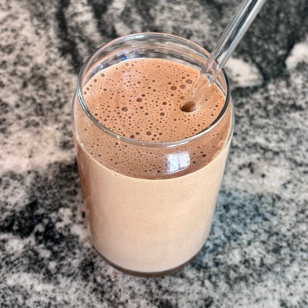 - 1 – scoop of double chocolate whey protein powder